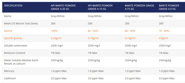 The name baryte is derived from the greek word βαρύς (heavy). It is a mineral consisting of Barium Sulfate (BaSo4) and the primary source for producing Barium. India is one of the top producing countries of baryte and indian baryte is well accepted in various applications including as a constituent of drilling mud in oil exploration industry.